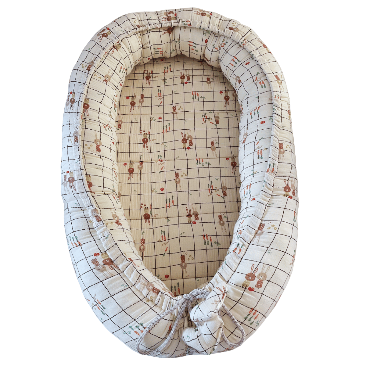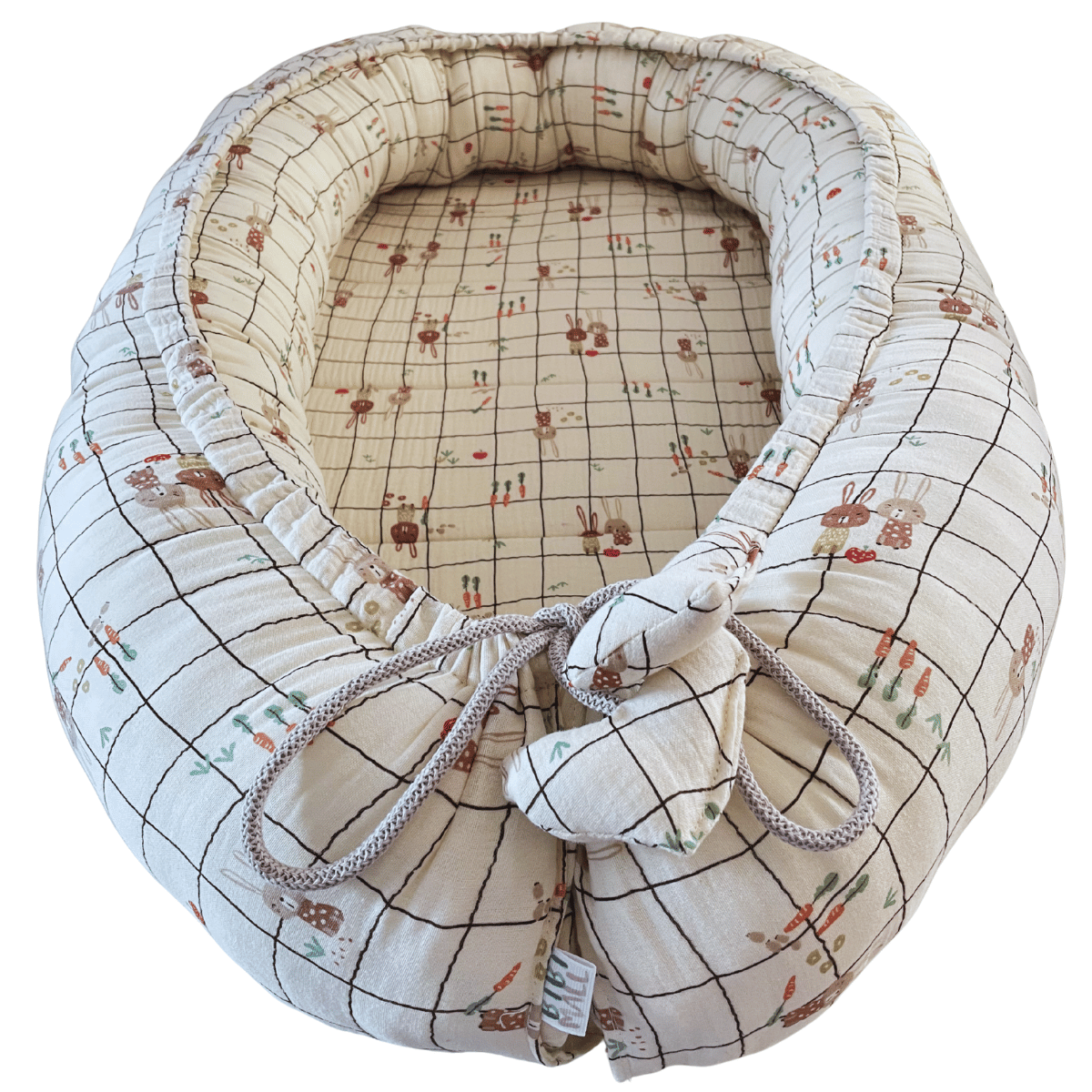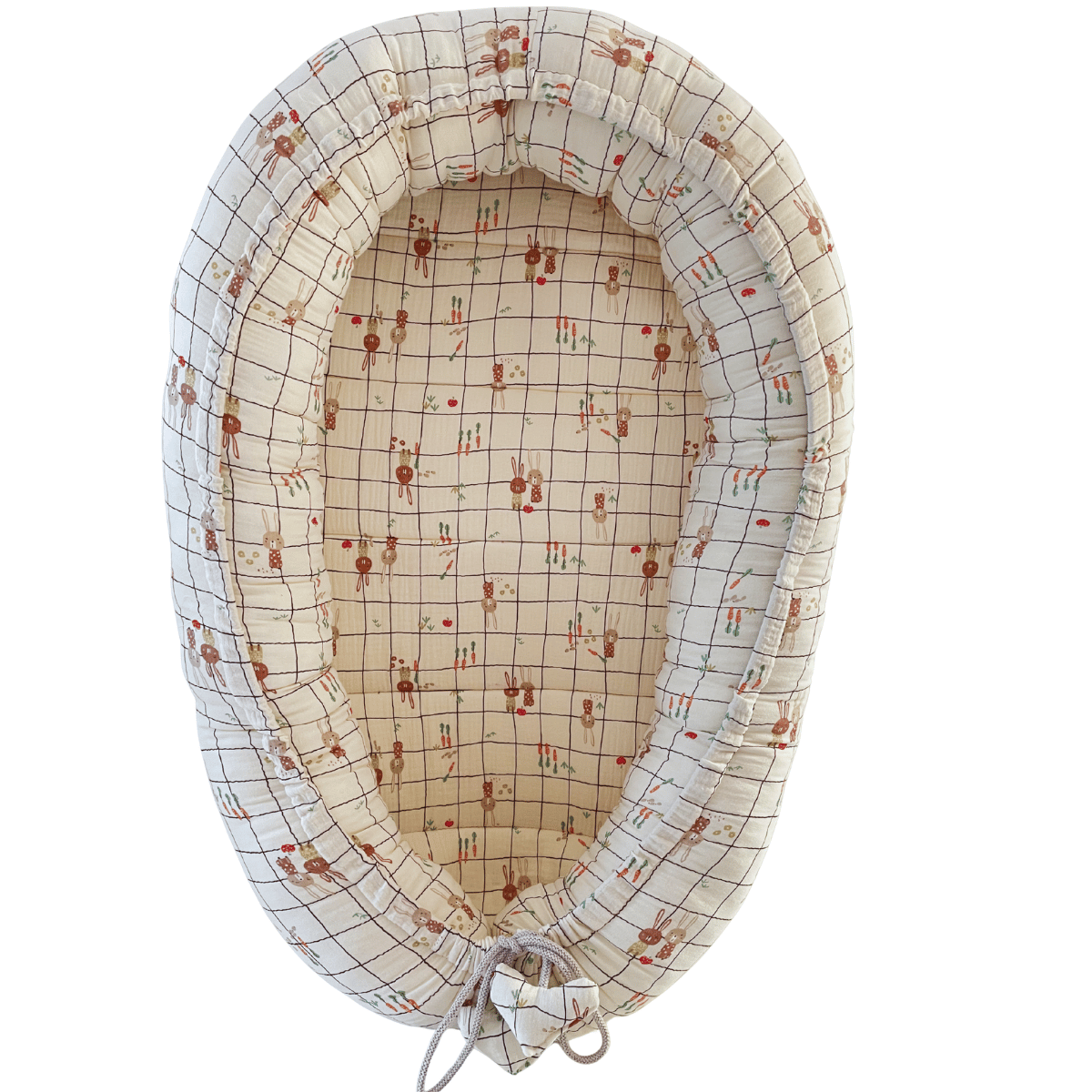 Kokon niemowęcy muślin beżowy-Króliczki na kratce
