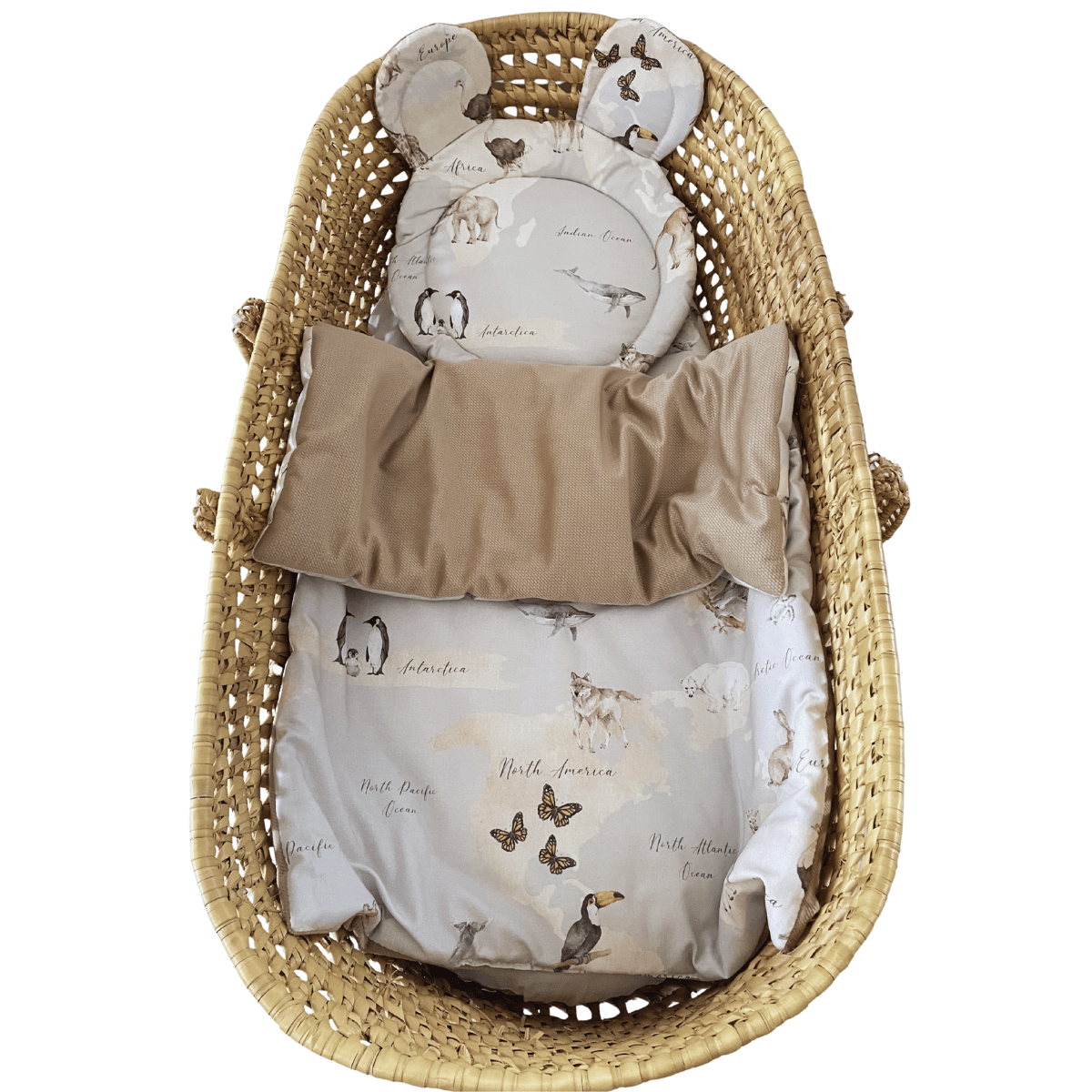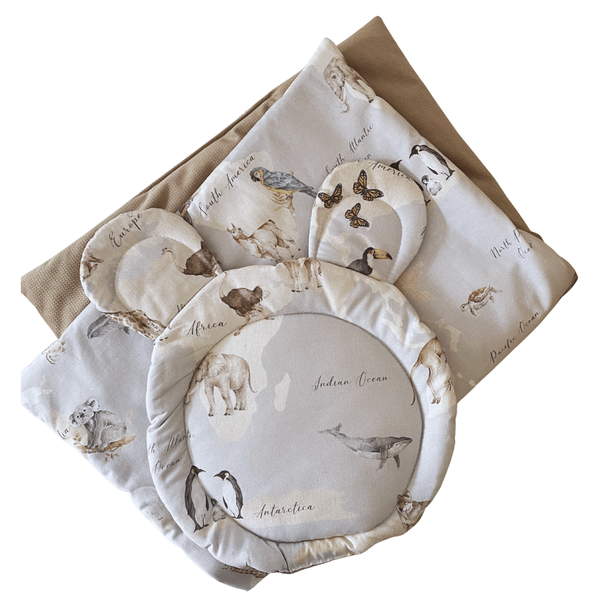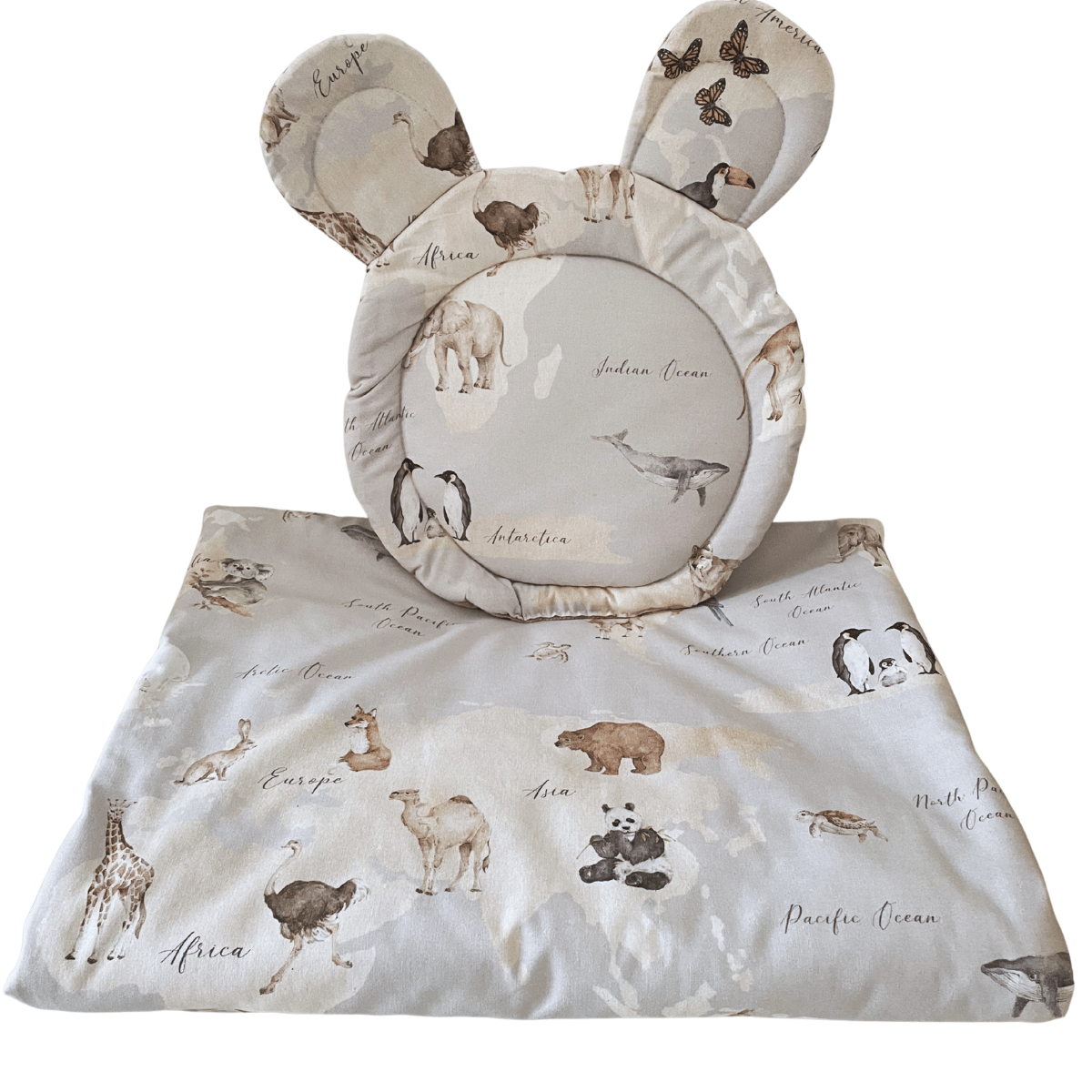 Komplet do gondoli dla niemowlaka- kocyk i poduszka miś z kolekcji Mapa Świata