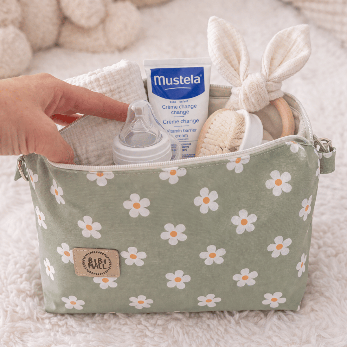 - Wyposażona w wygodne uchwyty do zawieszenia na wózek,świetnie sprawdzi się podczas spacerów z dzieckiem, ale także jako pojemna kosmetyczka na co dzień.