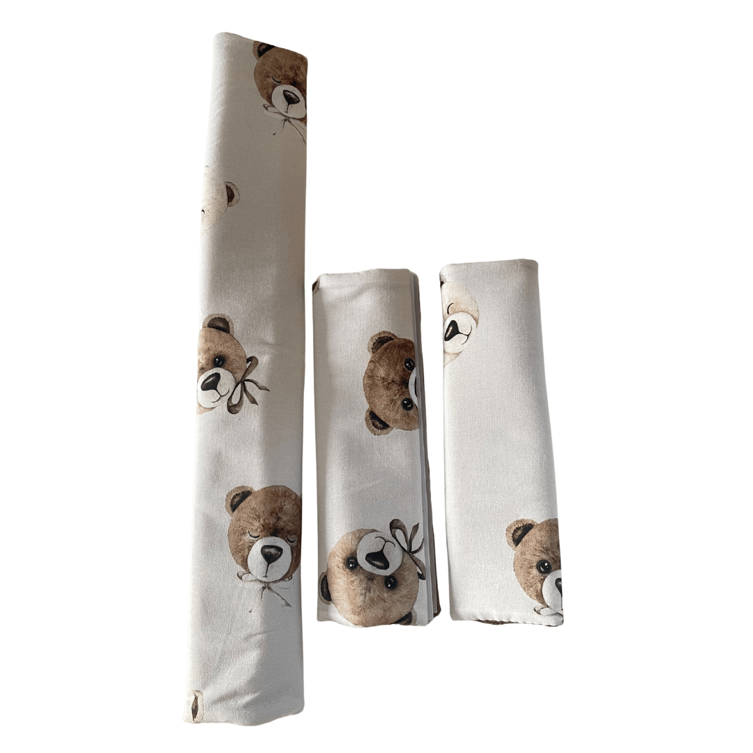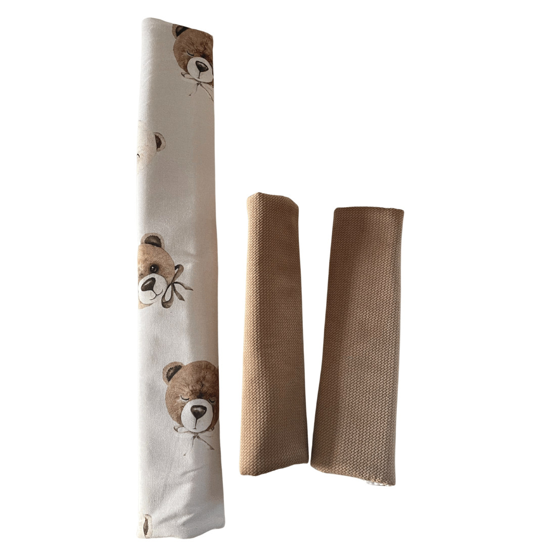 Ochraniacze na pasy i pałąk do wózka dziecięcego – miękkie ochraniacze do spacerówki w misie