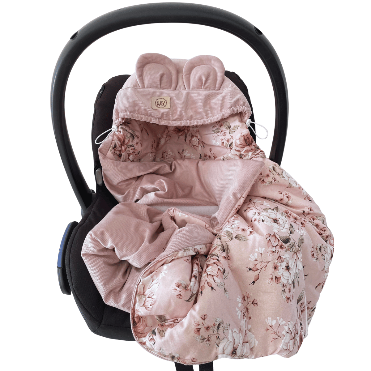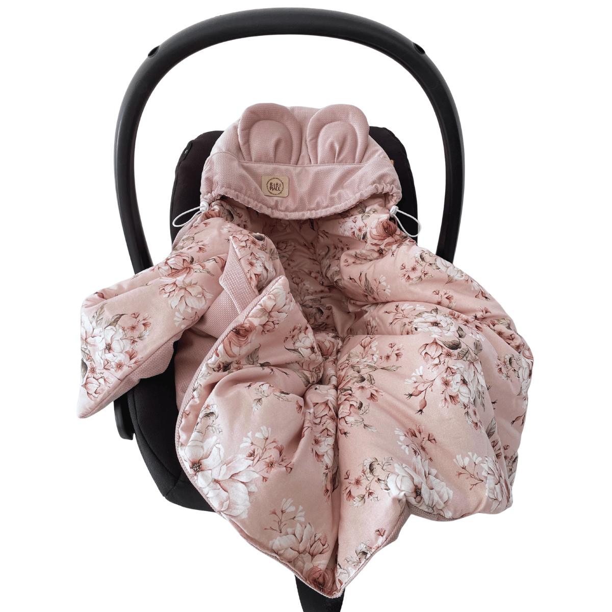 Otulacz do fotelika samochodowego różowy w kwiaty-uniwersalny