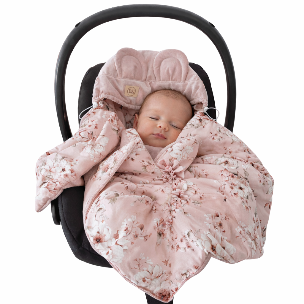 Otulacz do fotelika samochodowego różowy w kwiaty–bawełna,velvet