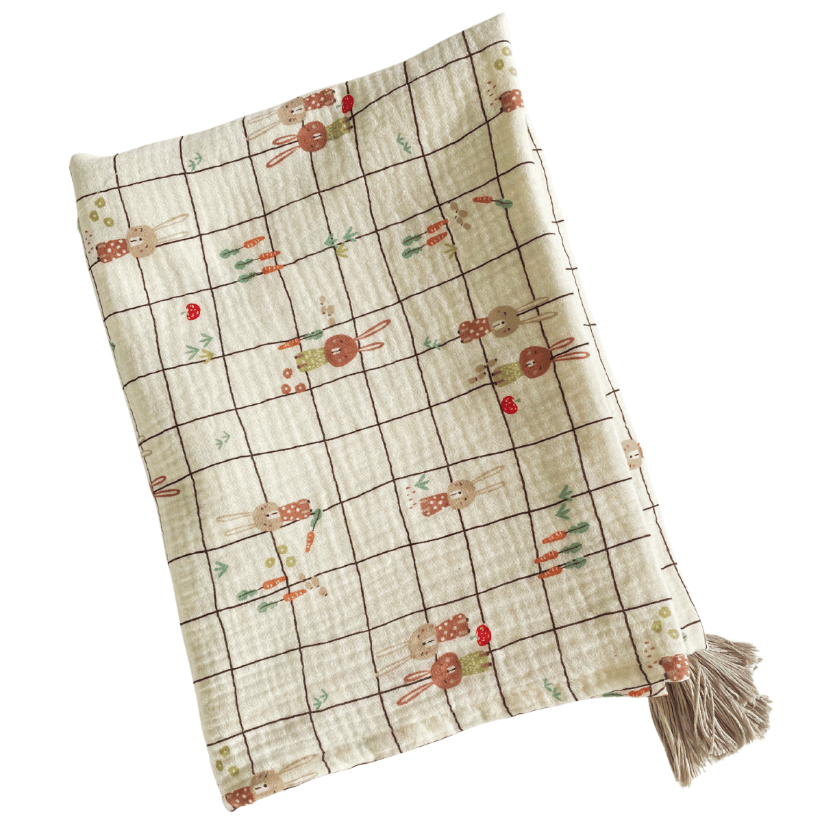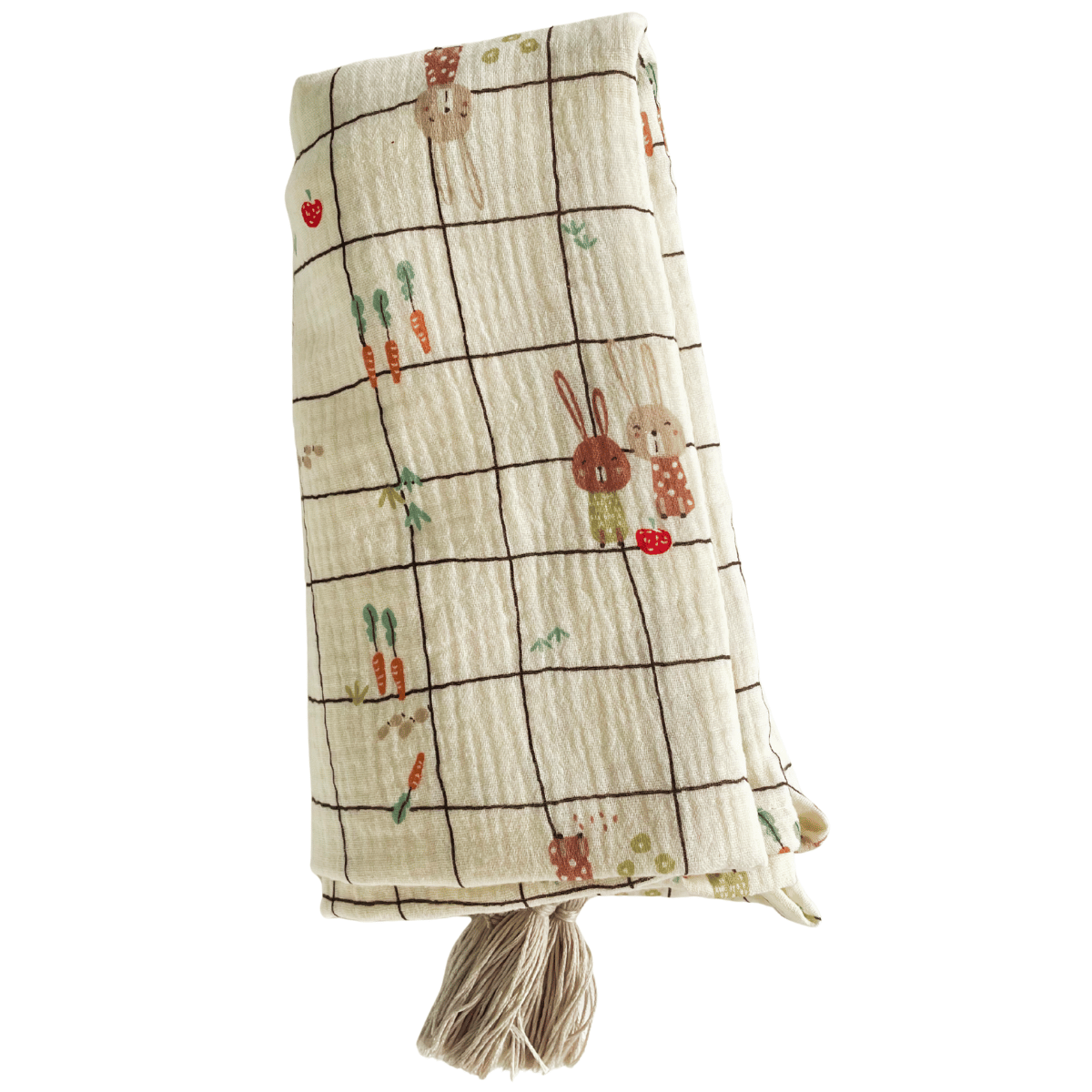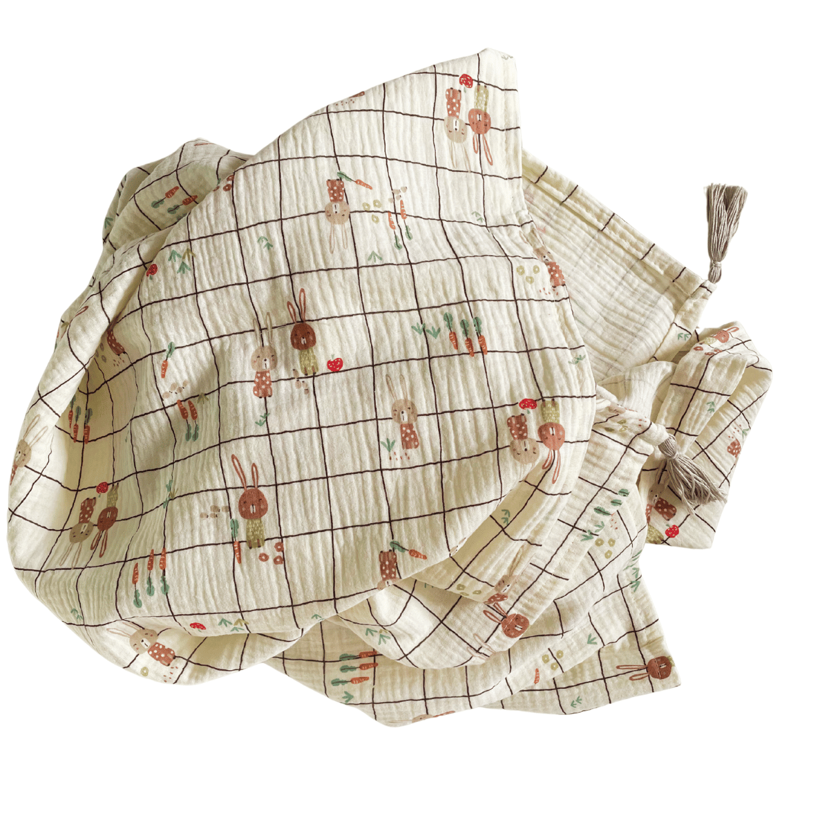 Otulacz muślinowy króliczki beż-lekki kocyk dla dziecka