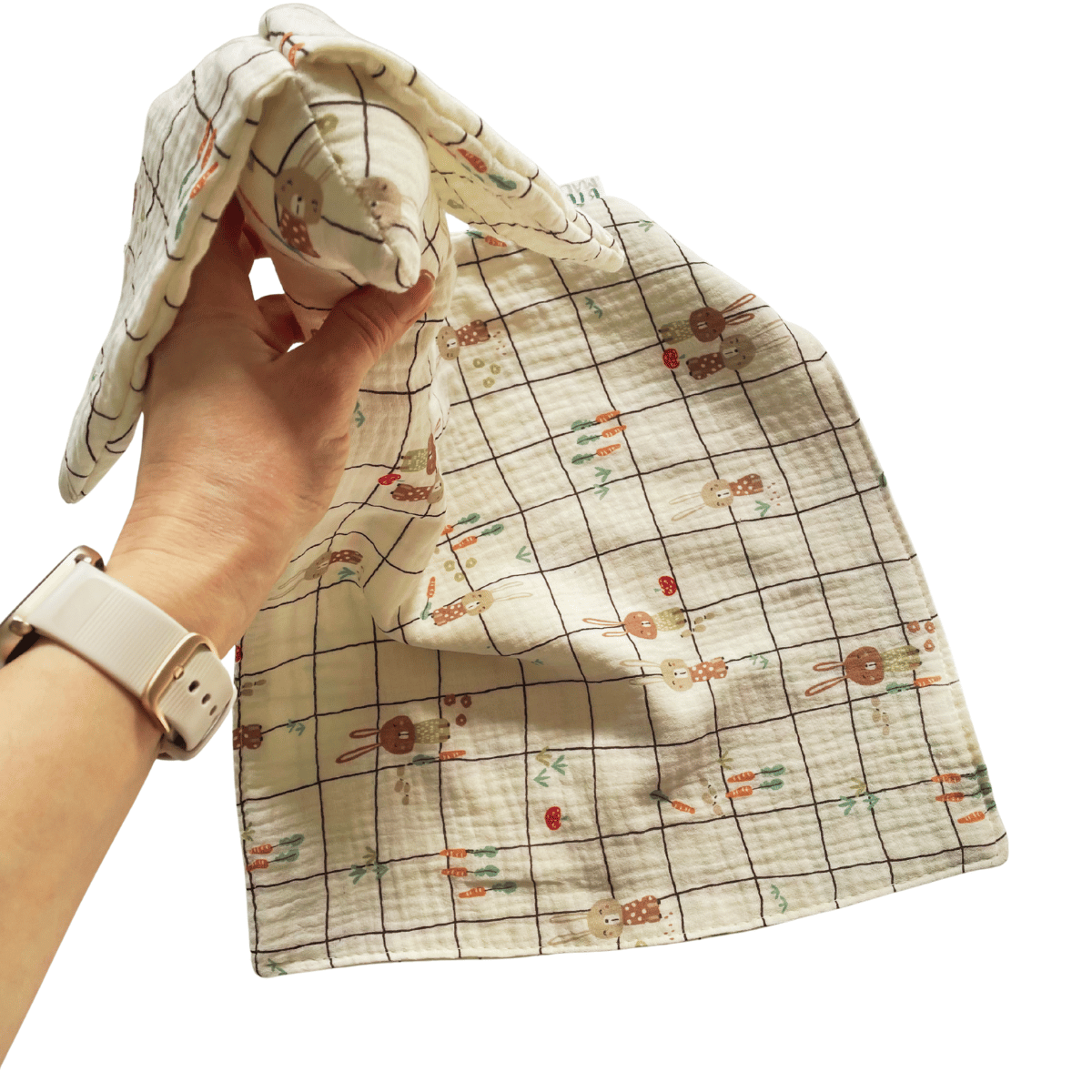 Pieluszka muślinowa króliczek w króliczki–delikatna przytulanka dla noworodka